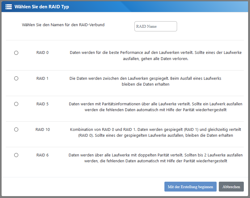 Der ZFS-Modus ist ideal für geschäftskritische Daten, Backup-Systeme und VM-Speicher, bei denen höchste Datensicherheit und Funktionalität gefordert sind.