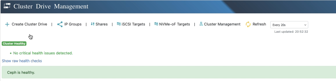 Open Cluster Drives in the UI and select Create Cluster Drive to launch the wizard.