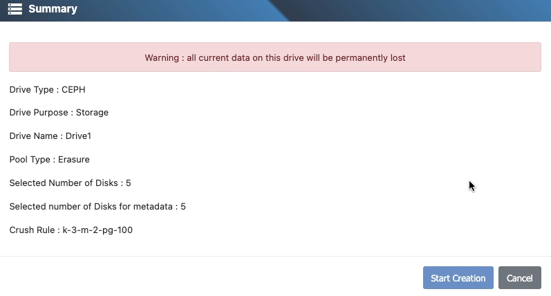 Use this procedure to create a new Cluster Drive (Ceph-backed storage) in eEKAS. The example below walks through creating an Erasure Coding drive.