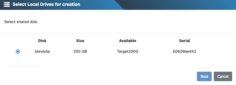 Choose the type of storage for your cluster drive. You can either create a drive mirror or a shared drive accessed by both nodes via iSCSI, SAS, Fibre Channel, NVMe-oF, or NVMe over TCP. In this example, we will create a shared drive.