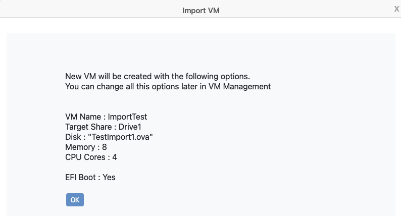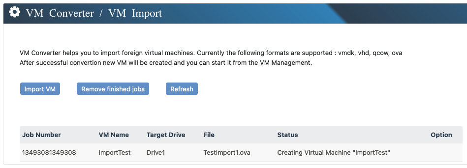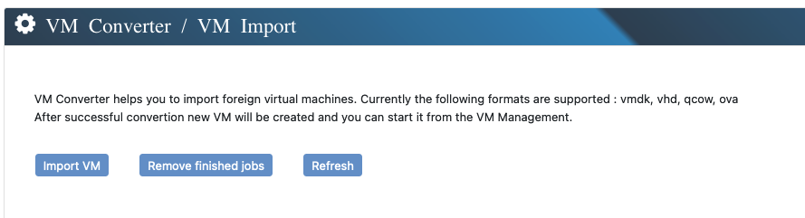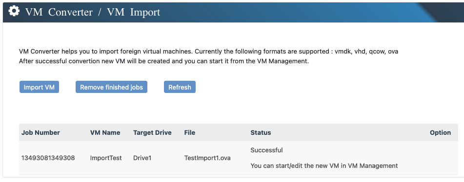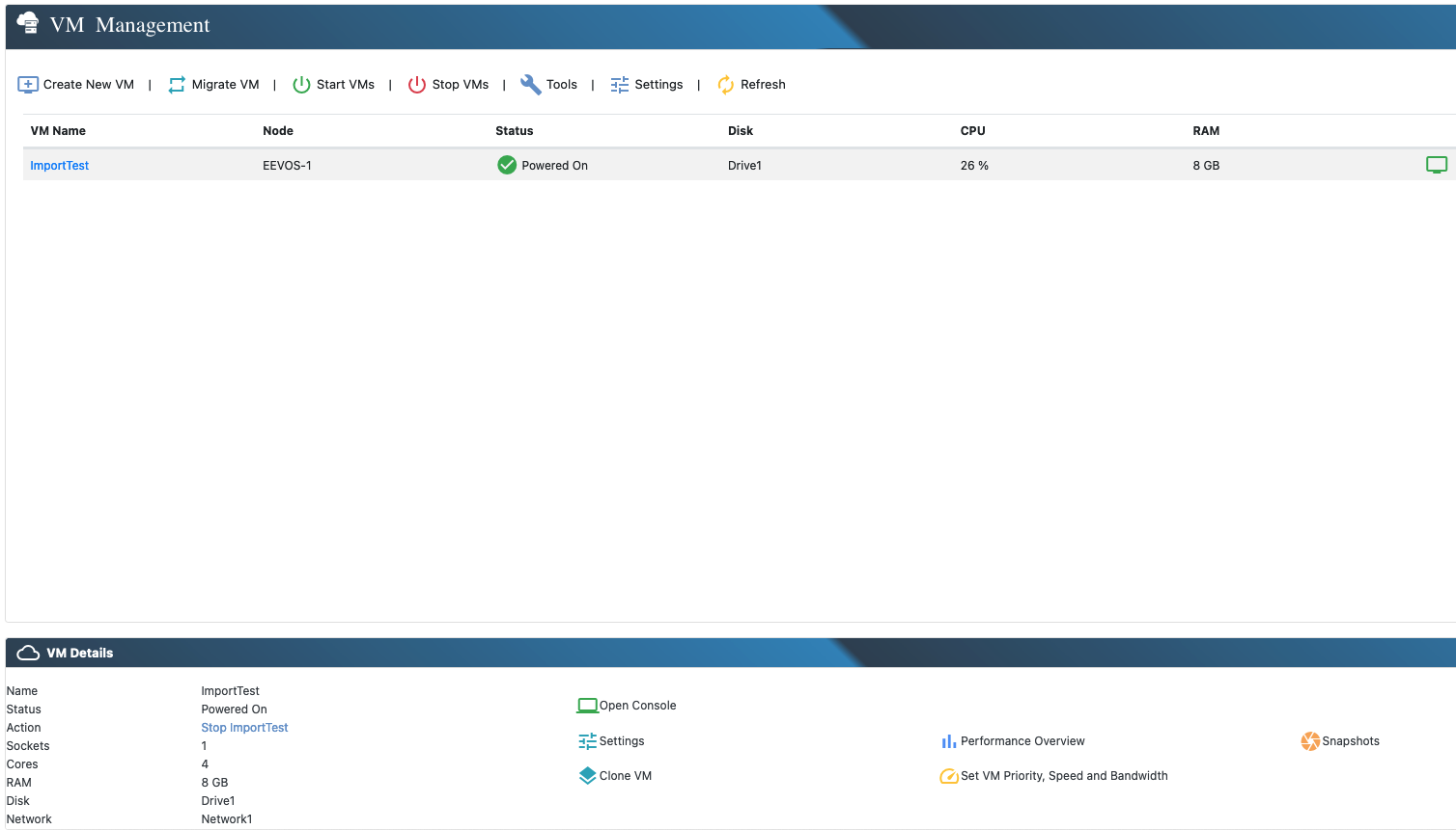 After a successful import, navigate to the VM Management section to start your newly imported virtual machine.