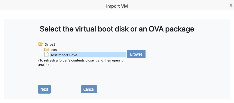Select the virtual machine image that you want to import from your previous hypervisor.