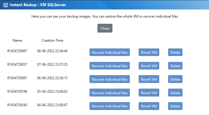 Note: Instant Backup & Recovery is ideal for fast data recovery. However, since the backups reside on the same drive as your VMs, we strongly recommend creating additional backups—for example, using VM Network Backup to a NAS server for long-term protection.