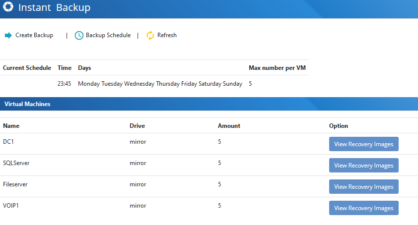Instant Backup & Recovery allows you to back up and restore entire virtual machines or individual files within seconds.