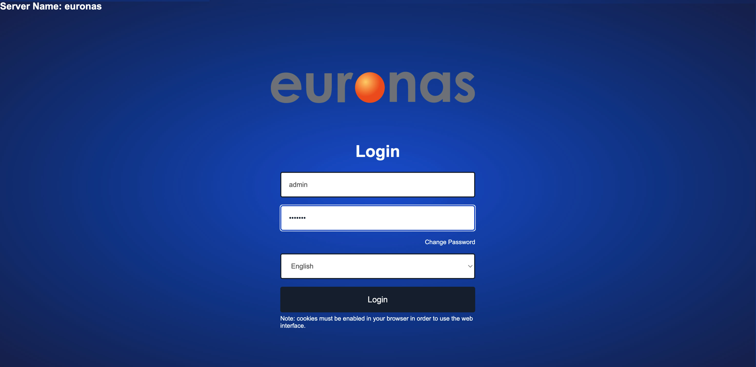 You will be presented with the main login screen. As previously noted, the default credentials are: