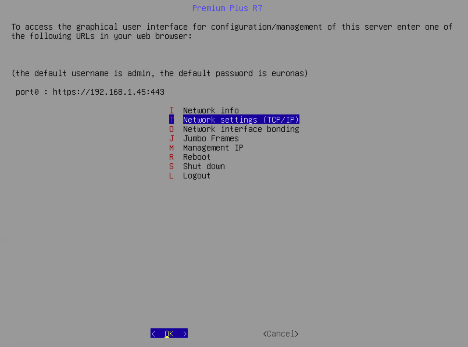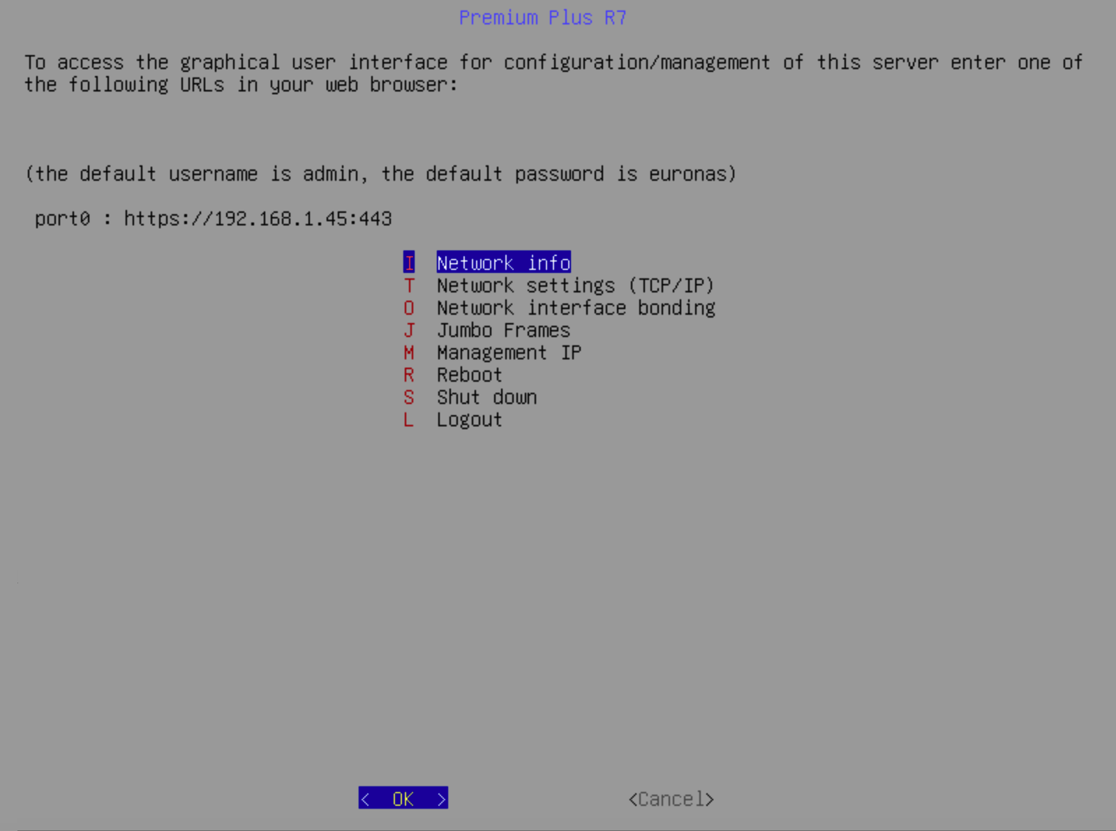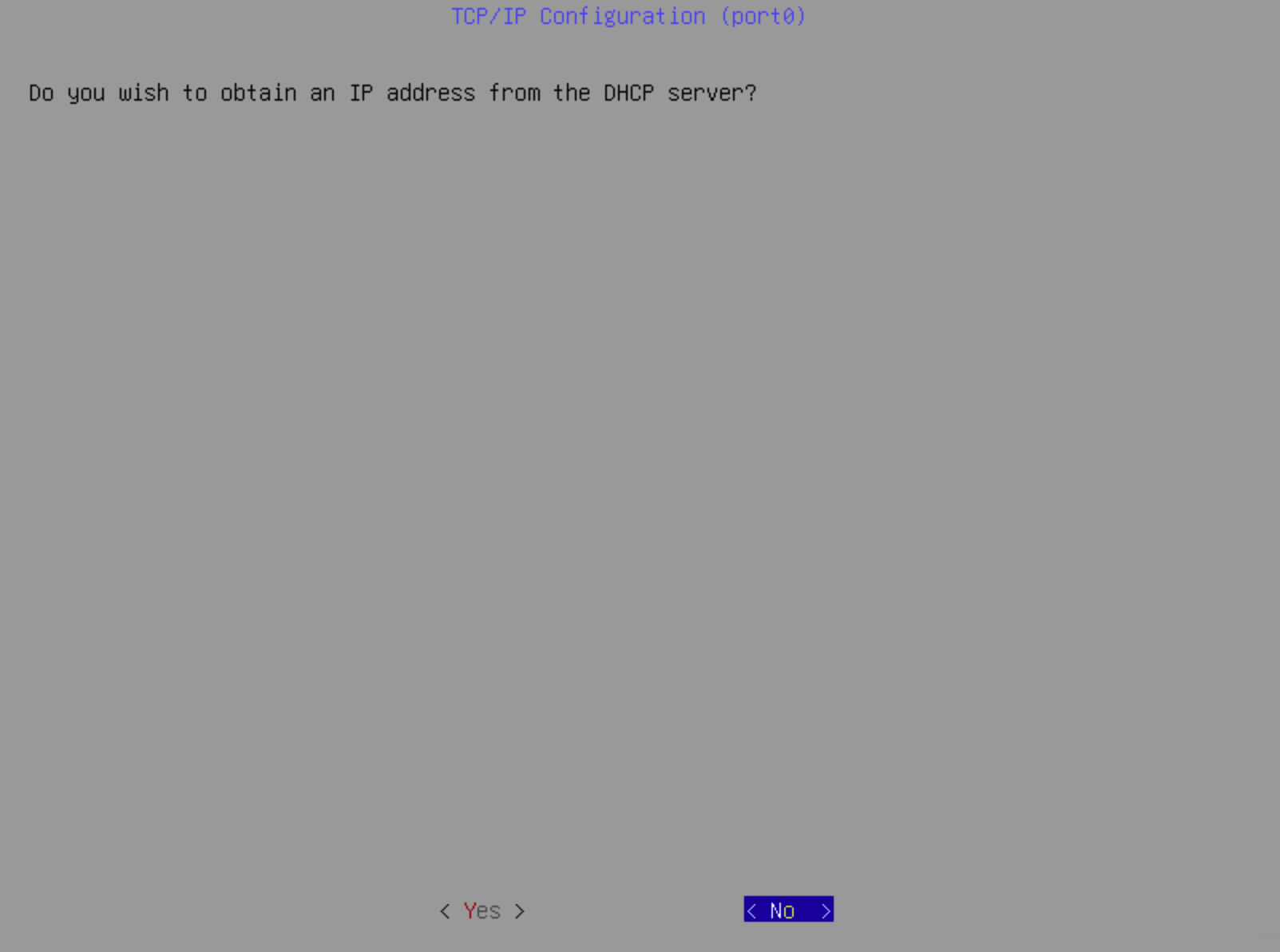 The first configuration screen provides the option to assign IP addresses via DHCP. This is not recommended for production environments, where static IP addressing should be used to ensure consistency and reliability. If required, DHCP can be used for initial setup, but the system should be moved to static IP configuration