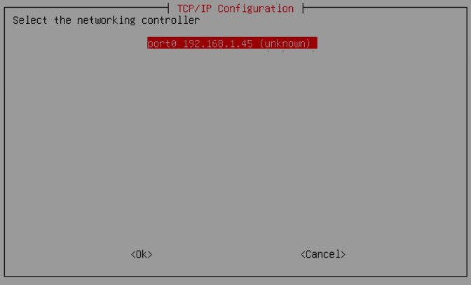 Select the network controller you wish to configure for the management interface. In this example, port0 (192.168.1.45) is selected, which has been assigned an IP address via DHCP and press enter.