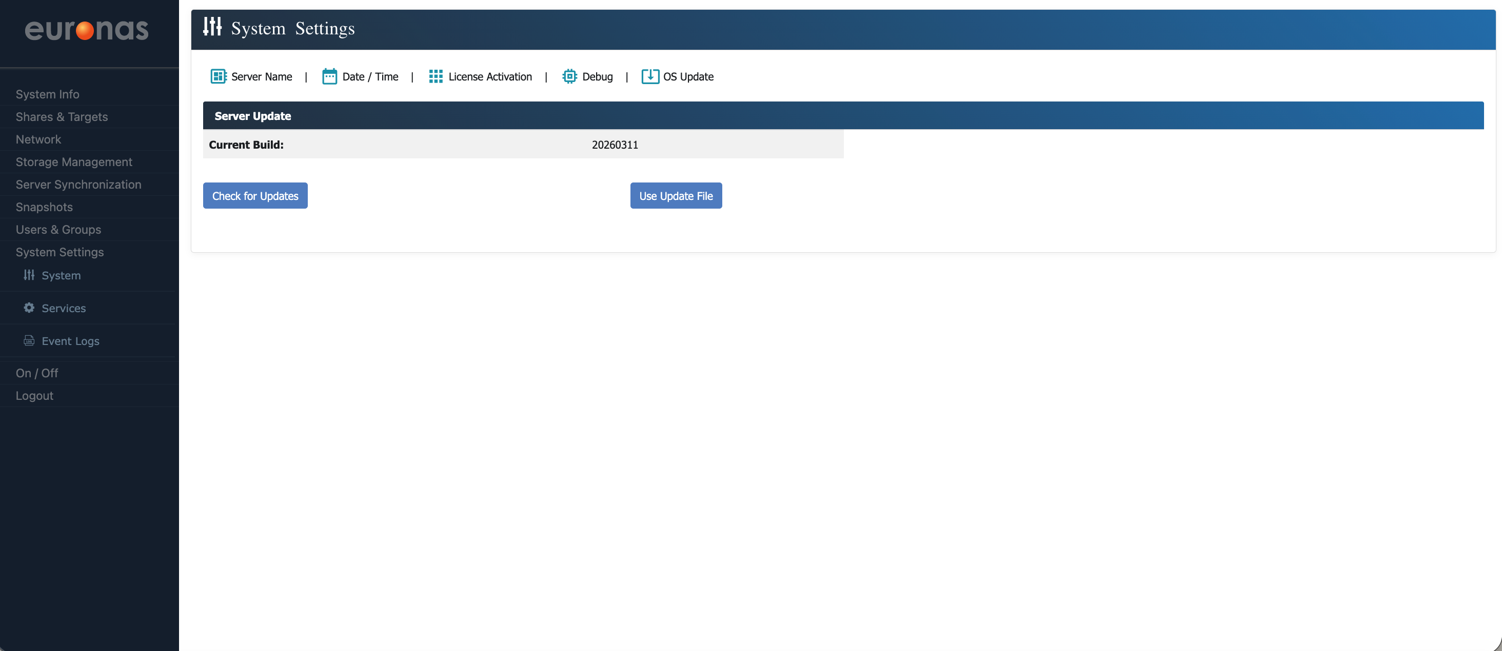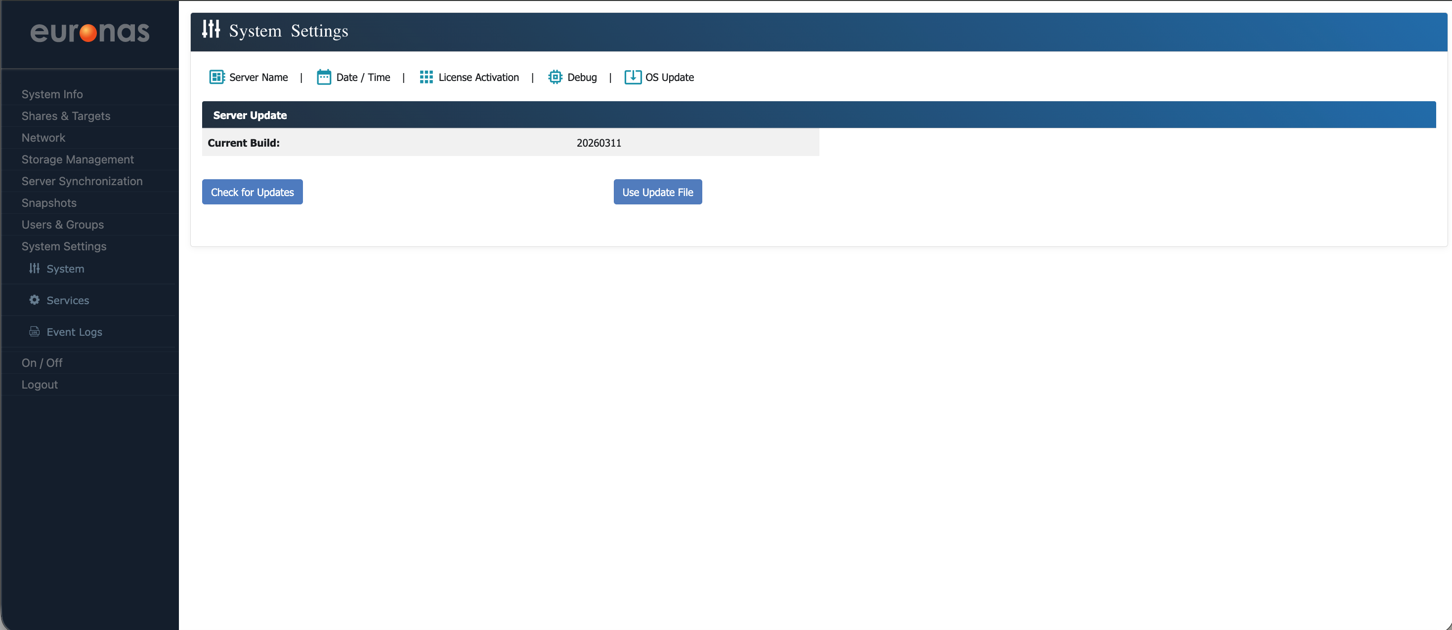 Here you can view the current build level of the system. In this example, the system is running build 20260311.