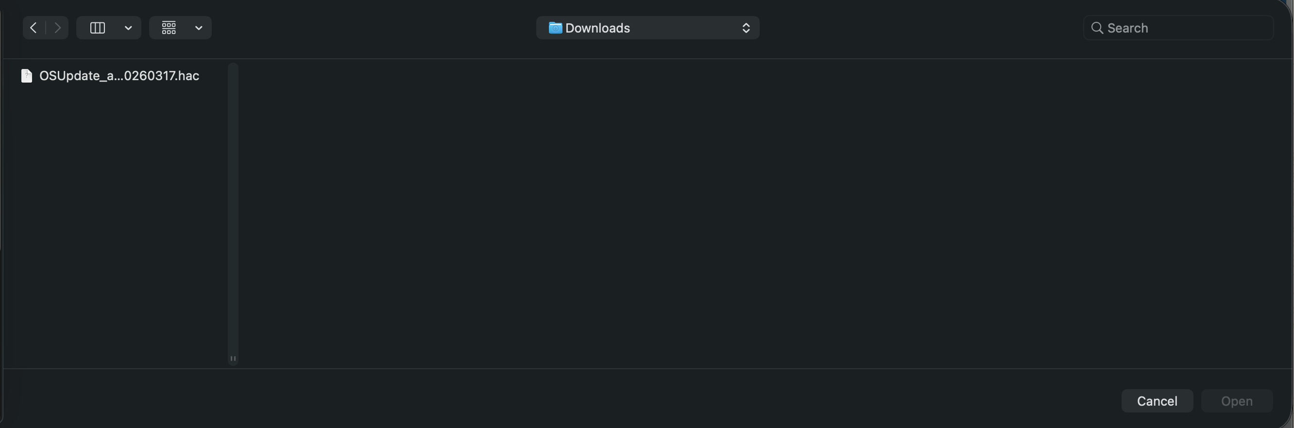 Navigate to the location where the update file is stored and select the file.