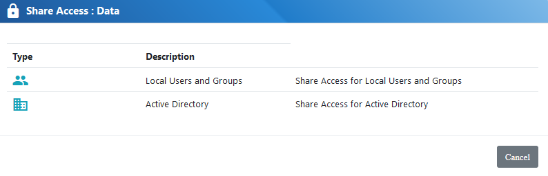 Select if you wish to assign local or active directory users and groups. Active Directory option will only be shown if the node is member of the active directory domain