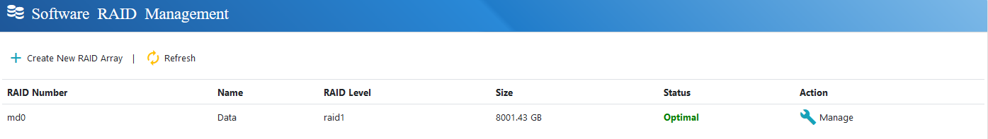 After the creation you can see your RAID in the RAID Manager. Drive is automatically initialized β there is no need for an additional initialization